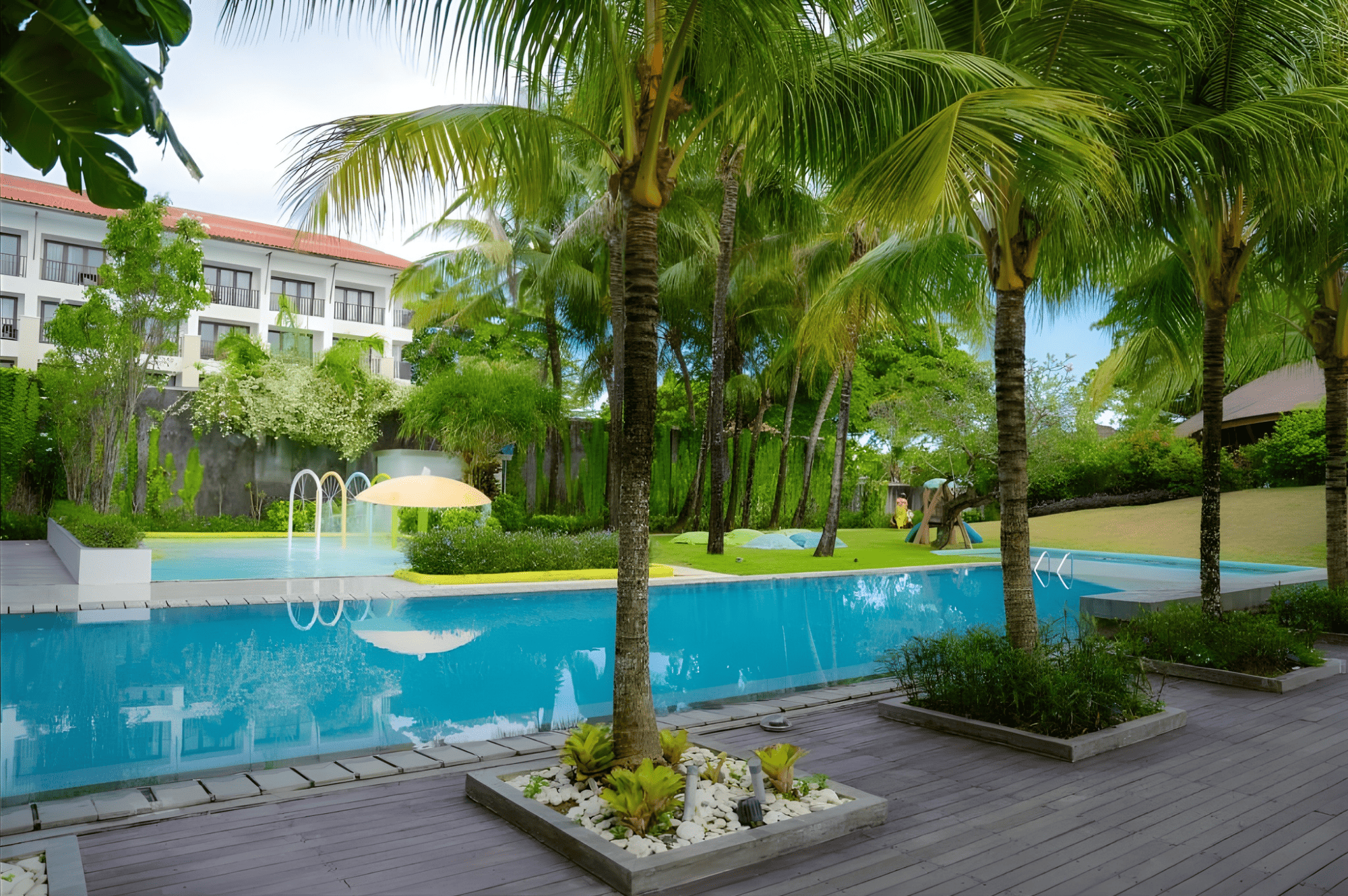 En Bali, el lugar donde descansas define tu experiencia. Por eso, hemos seleccionado el Hotel Tijili Benoa (o similar de categoría 4 estrellas superior), un refugio de diseño vibrante ubicado en primera línea de playa. Olvídate de los hostales improvisados; aquí disfrutarás de habitaciones modernas y espaciosas, piscinas infinitas y acceso directo a la arena dorada, garantizando que tus noches sean tan memorables como tus días de aventura.